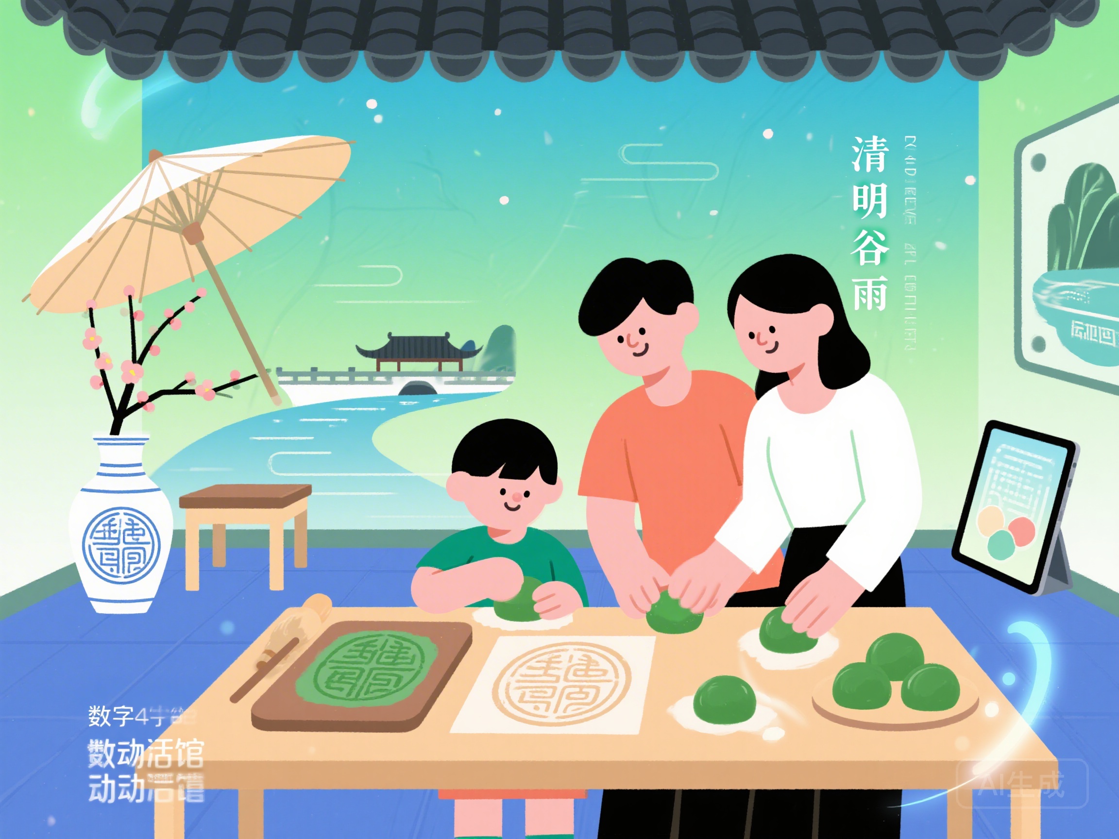 清明揉艾团,谷雨绘油伞。